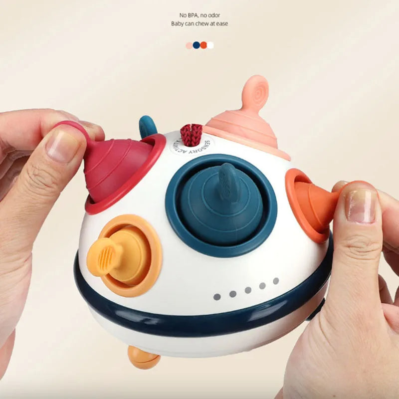 This toy combines tactile, auditory, and visual stimuli to support comprehensive sensory development. Features like pop fidget buttons, spinning elements, and pull strings encourage exploration and learning through play.