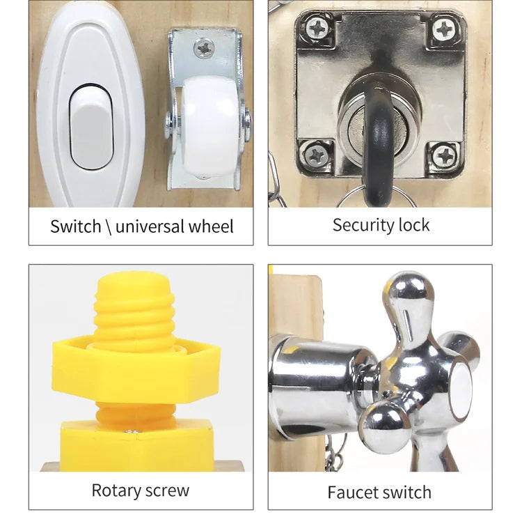 Each side of the Busy Cube features interactive locks, gears, and switches, meticulously crafted to strengthen hand muscles and improve dexterity. These activities are instrumental in developing the fine motor skills essential for tasks such as writing and self-care.