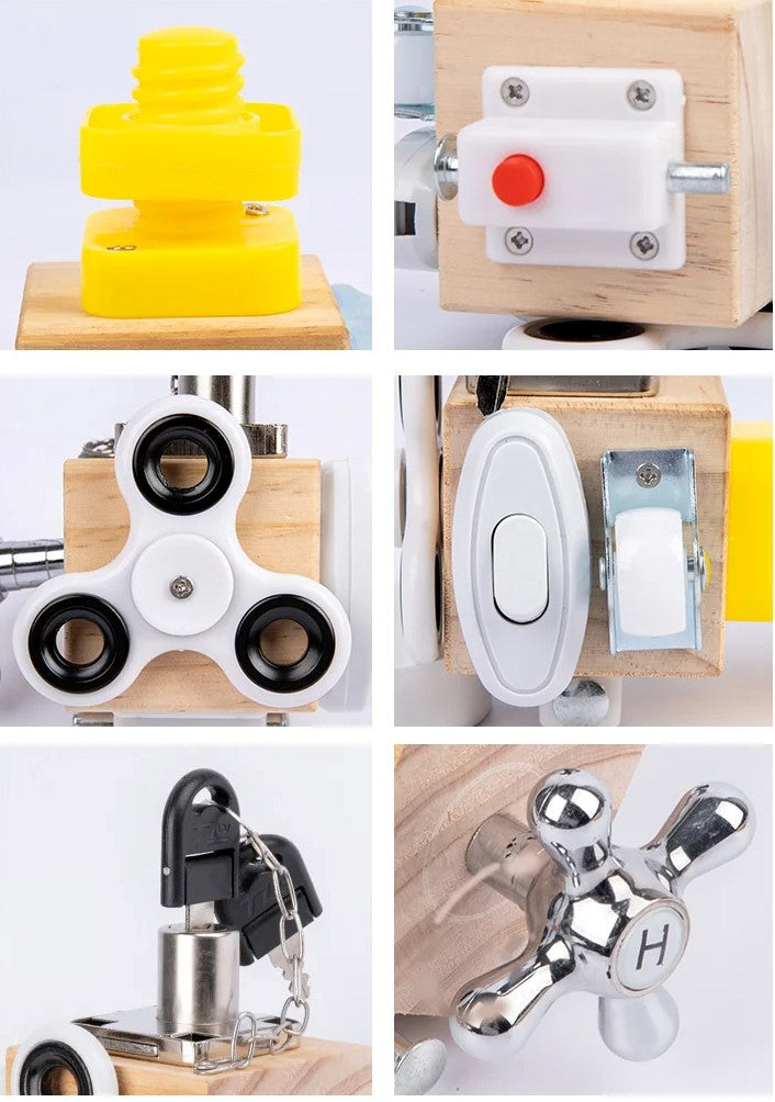 This busy cube encourages self-directed play, allowing children to explore and manipulate various elements independently. This fosters decision-making skills and nurtures a sense of autonomy from an early age.
