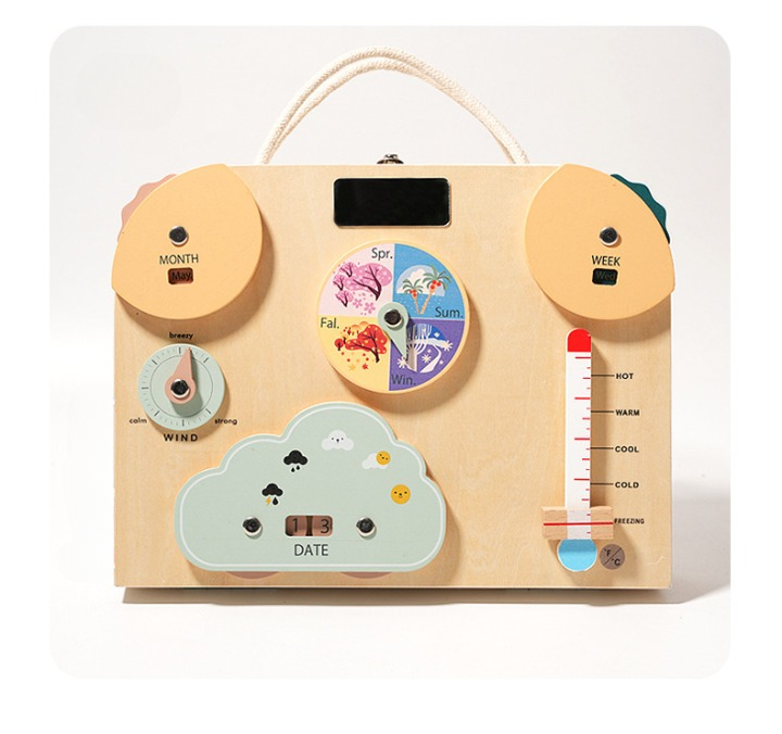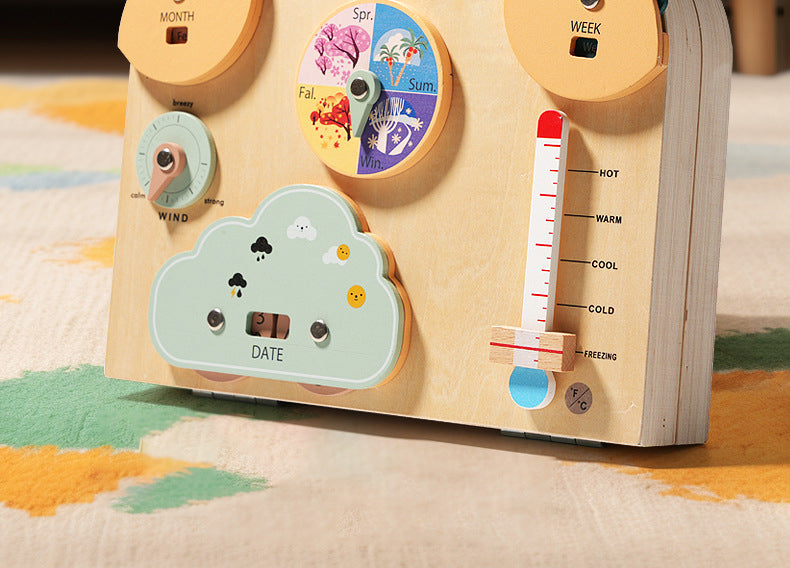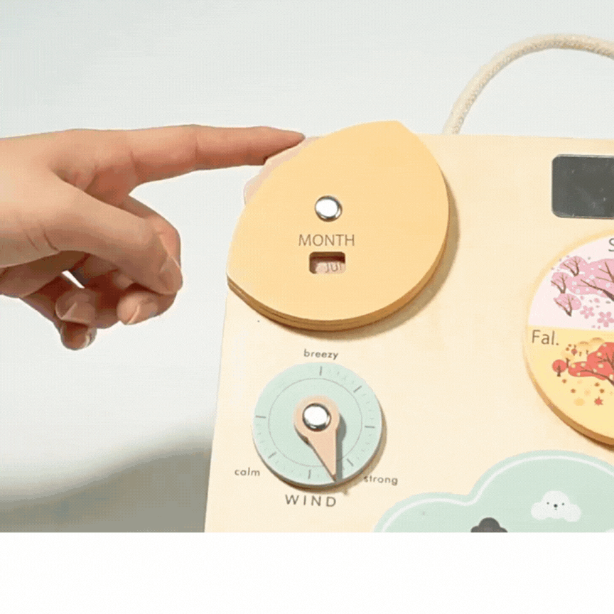 Your child will independently learn months, days of the week, the weather, and the temperature all in one toy. Introduce educational morning routines while manipulating and playing the different features on this board.