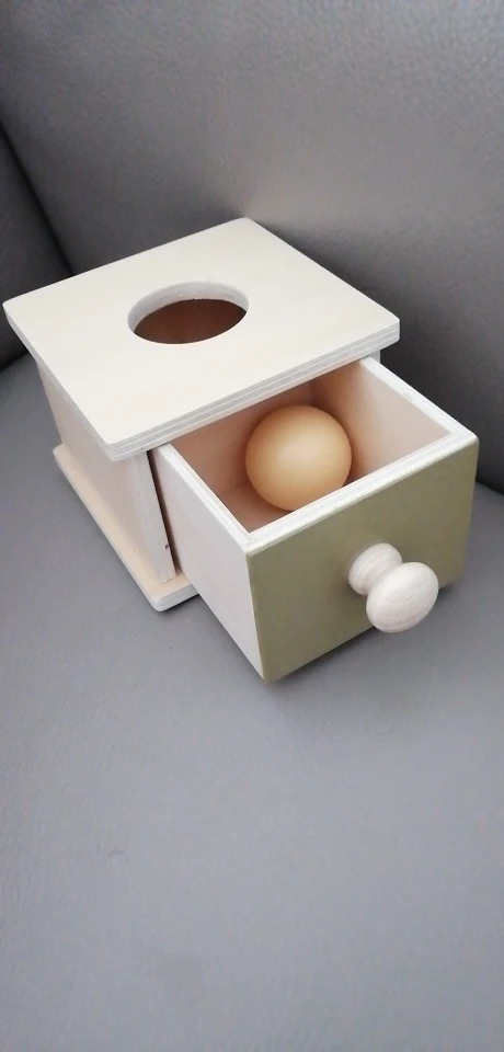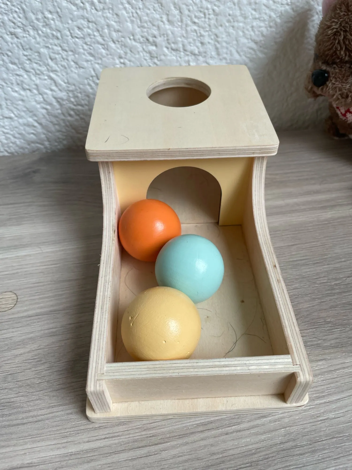 This toy teaches object permanence which is a key developmental concept by showing that objects continue to exist even when out of sight.