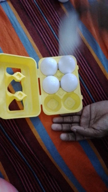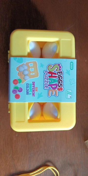 I loved it. It mimics a little box of eggs. The size is equal to the real eggs in a box. Inside each egg has a different geometrical shape and of different colors, thus adding to learning. Buy with confidence, this one is worth it.