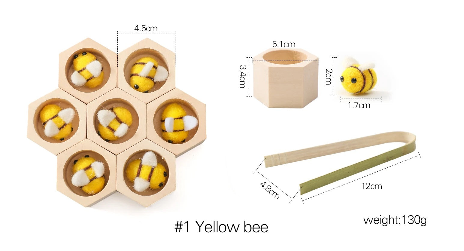 Contains: 7 honeycombs, 7 felt bees, 1 pincer
